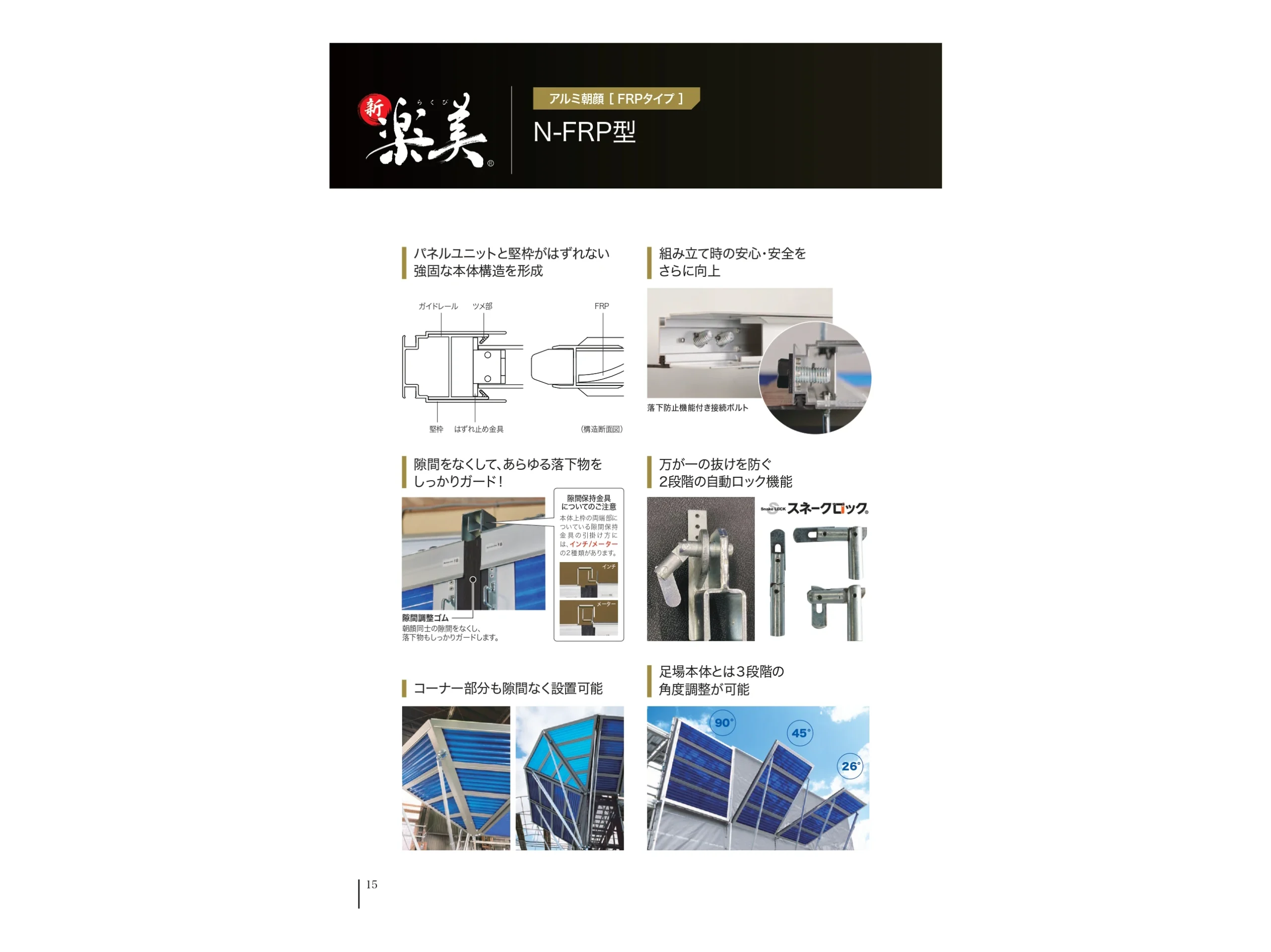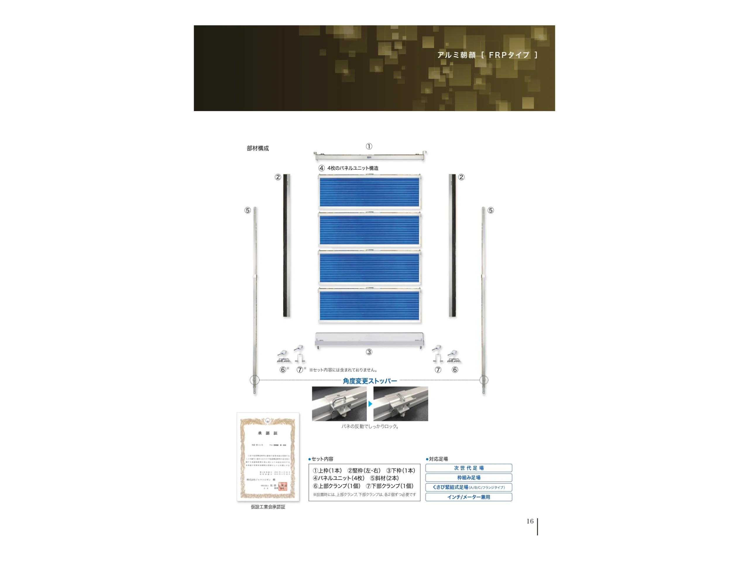 FRP板をアルミ型材でユニット化。従来のパネル朝顔は外枠を組み立て、