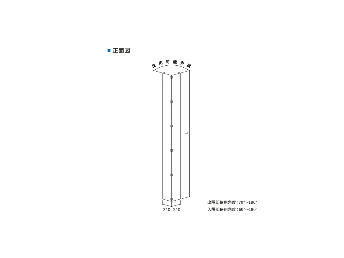 - 稼働範囲出隅:70°~180°入隅:60°~180°