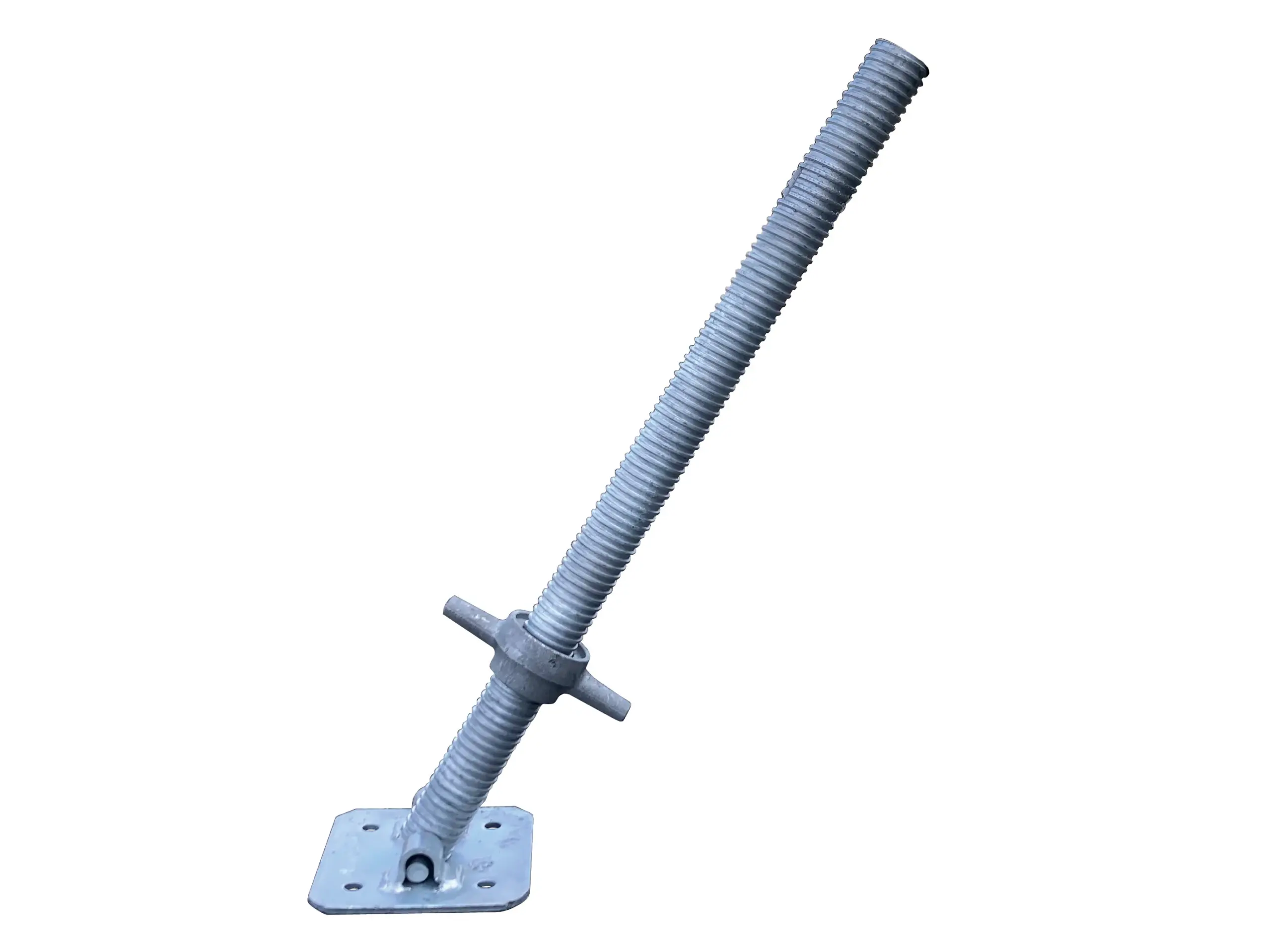 ジャッキとは、足場の最下部に使用して上下の高さを調節する機材のことであり、エコベースと呼ばれるプラスチックまたは鉄製の敷板を下に敷いて使います。ジャッキは足場を支える「足」の役割があり、仮設足場の安定性を高める重要な機材です。