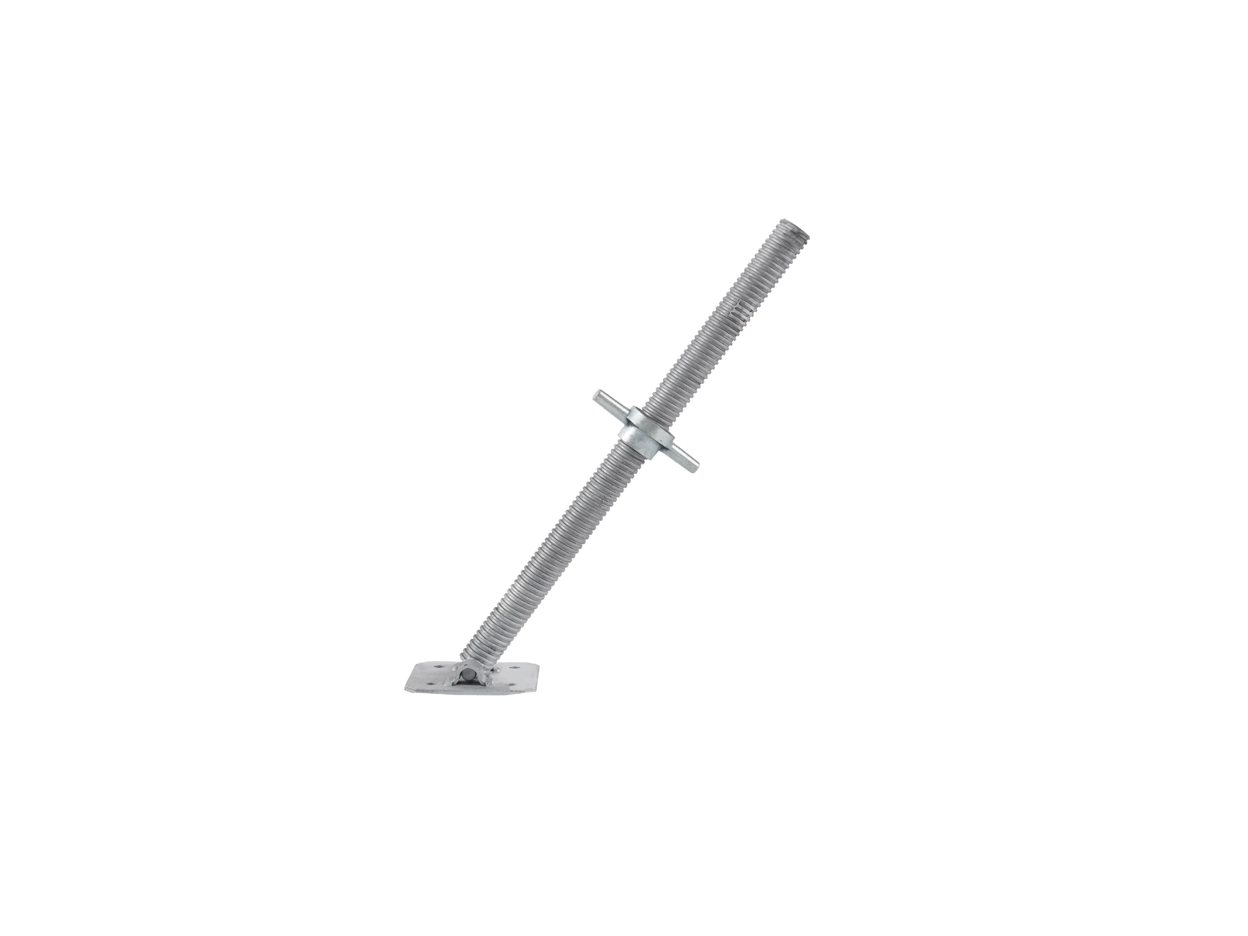 ジャッキとは、足場の最下部に使用して上下の高さを調節する機材のことであり、エコベースと呼ばれるプラスチックまたは鉄製の敷板を下に敷いて使います。ジャッキは足場を支える「足」の役割があり、仮設足場の安定性を高める重要な機材です。