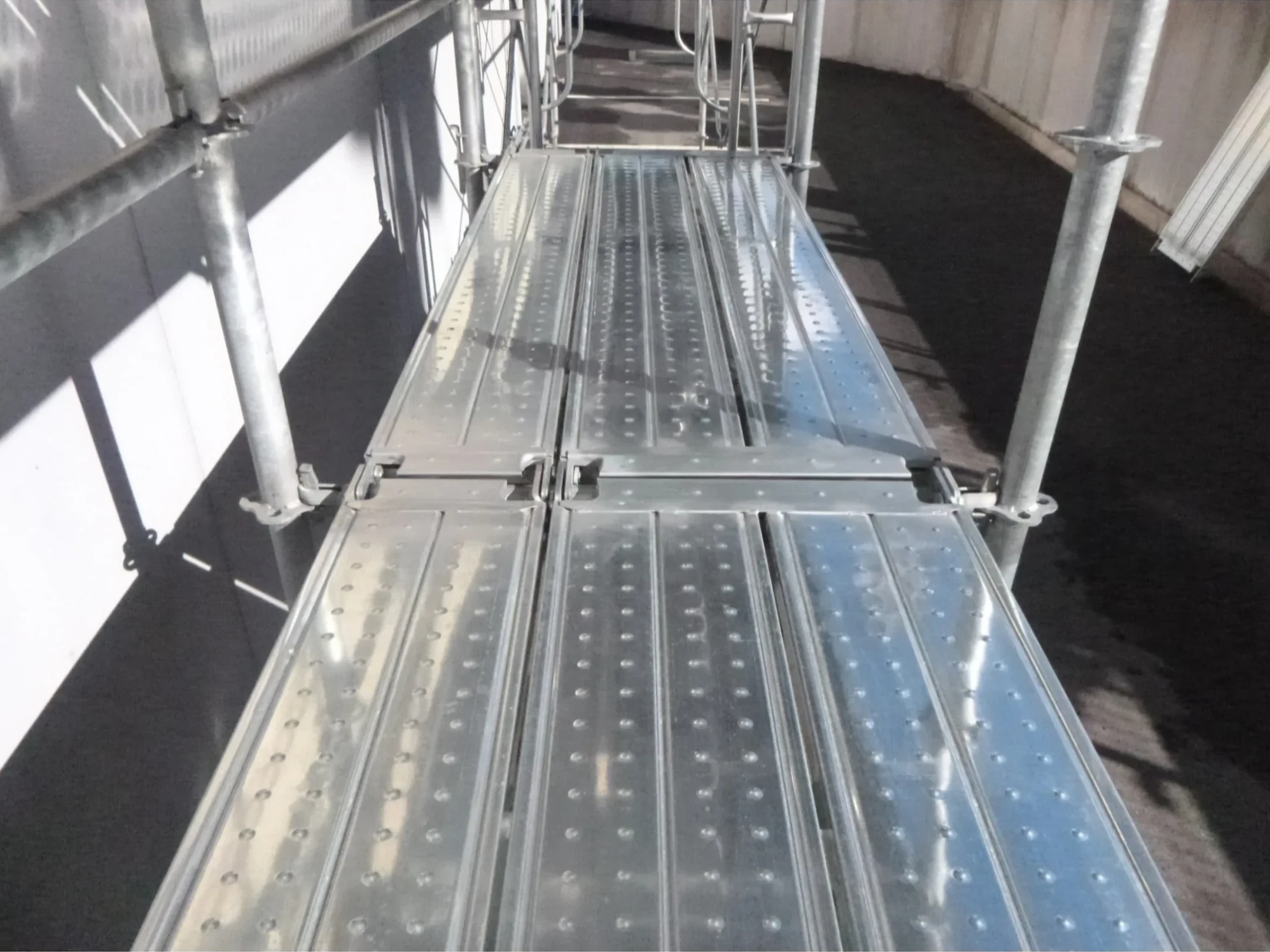 ◎建わくの横架材と鋼製足場板のはり材、及び床材間の隙間を少なくしました。◎つかみ金具と床面との段差をなくし、歩行面がフラットになりました。◎仮預け機能により一人での解体作業が容易になりました。◎床材は高張力鋼板使用のため、軽量で組立・解体の作業性が向上します。