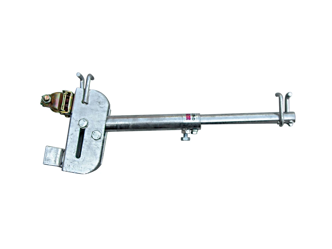 足場と躯体の間に設置するネットをきれいに張るためのネット専用ブラケット。隙間に安全ネットを張ることで墜転落や物の落下を阻止します。起立式の為、使用しないときはパイプを垂直にすると開口部での作業も可能。