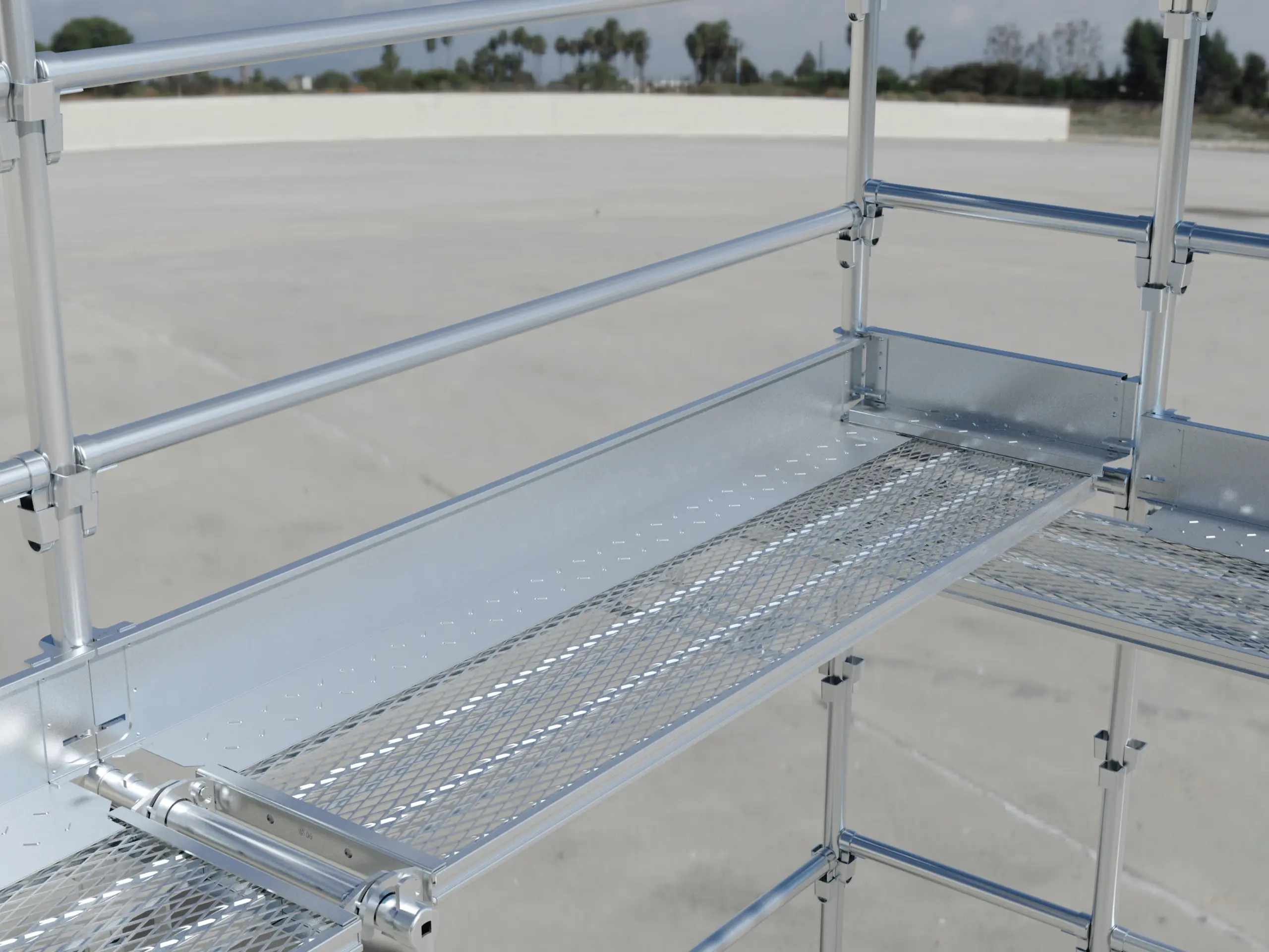 支柱と支柱の間に設置し、支柱と踏板の間の隙間を埋めて、物の落下防止をします。取り付けは、片側フックを支柱に固定させるだけで、スピーディーな取り付けが可能です。